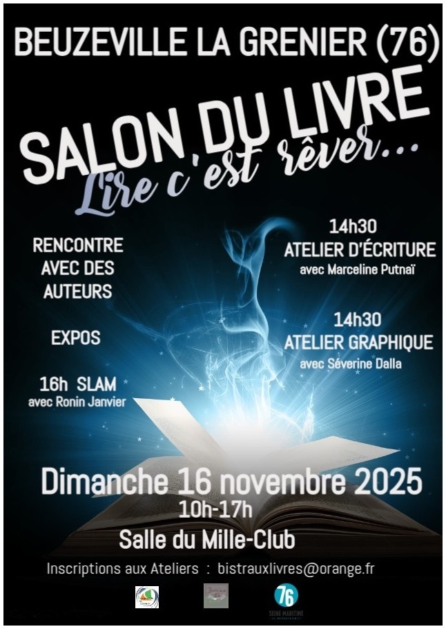 - Le samedi 22 novembre de 10h à 13h : mini-salon organisé par la bibliothèque de Saint-Georges-sur-Fontaine (76, près Rouen)