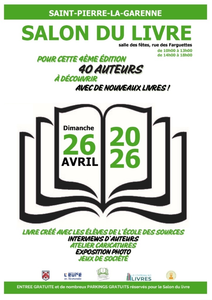 - Le dimanche 26 avril : salon du livre de Saint-Pierre-la-Garenne (27)