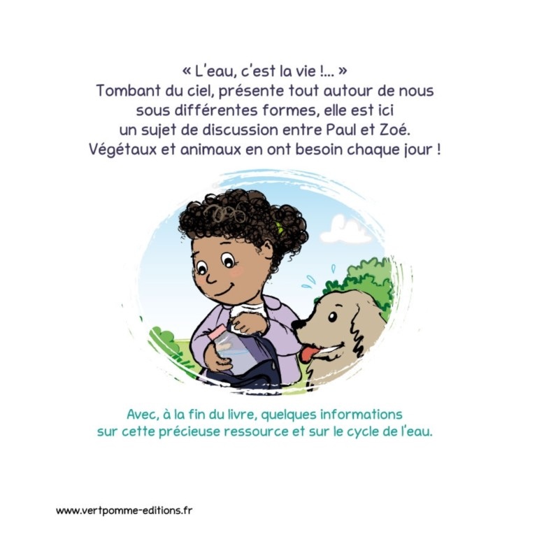 Livre 1 : « L'eau, c'est la vie !... » Tombant du ciel, présente tout autour de nous sous différentes formes, elle est ici un sujet de discussion entre Paul et Zoé. Végétaux et animaux en ont besoin chaque jour ! Avec des informations sur cette précieuse ressource et sur le cycle de l'eau.