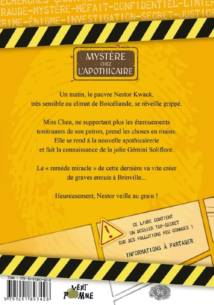 Un matin, le pauvre Nestor Kwack, très sensible au climat de Boicéliande, se réveille grippé. Miss Chen, ne supportant plus les éternuements tonitruants de son patron, prend les choses en mains. Elle se rend à la nouvelle apothicairerie et fait la connaissance de la jolie Gémini Soliflore. Le « remède miracle » de cette dernière va vite créer de graves ennuis à Brinville... Heureusement, Nestor veille au grain ! Avec, après l'histoire, un dossier sur différentes pollutions.